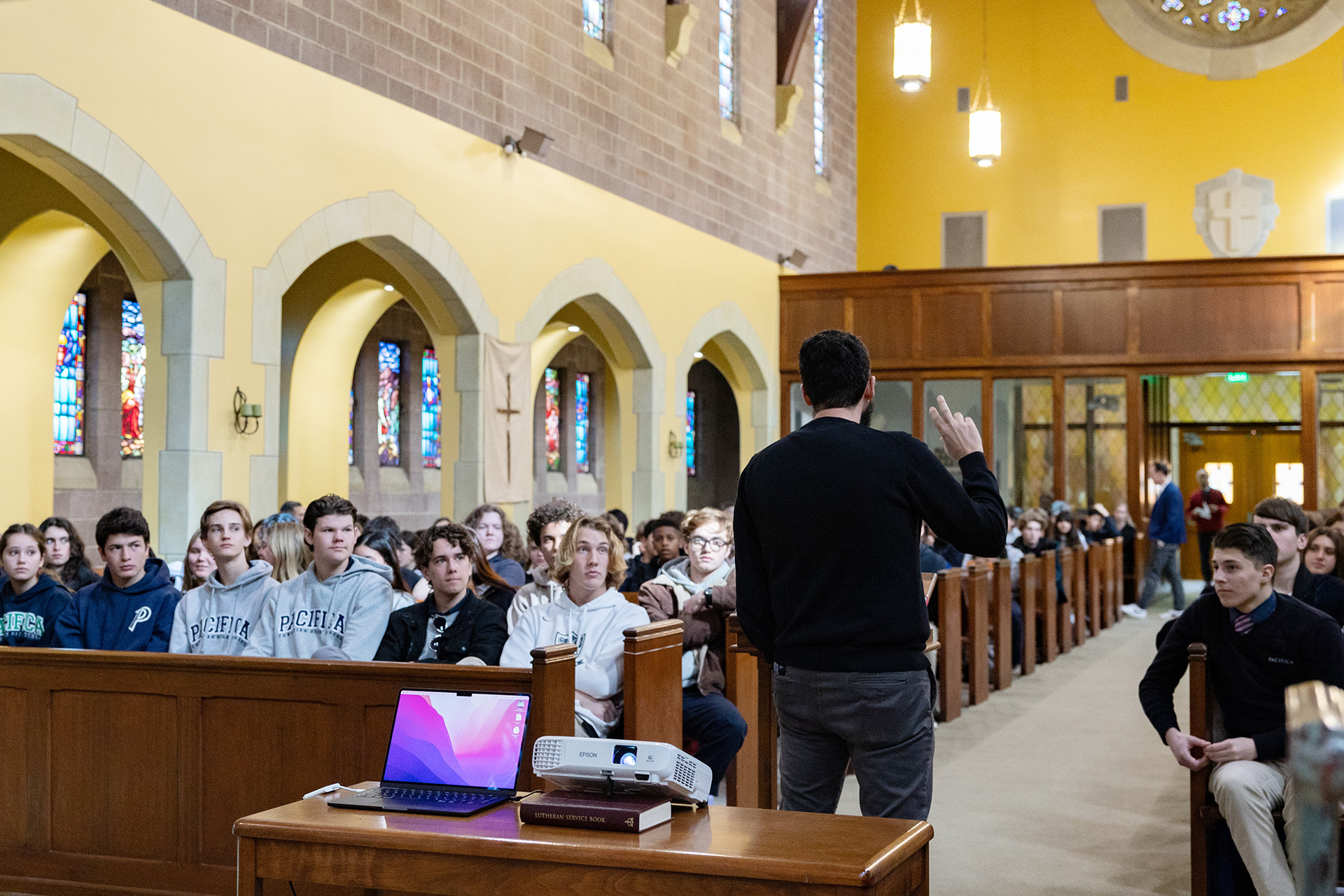 Students attend weekly chapel, which is a time reserved for prayer, singing, and a short teaching by our chapel director, a staff member, or a guest speaker. Everyone attends, making it a distinctive time during the week when the entire school is gathered together. The goal of chapel at Pacifica is to tell God’s story to all students so that they may walk further down the road on their spiritual journey. The amazing life of Christ and His gospel message is a message of hope and one that transforms lives. The Pacifica administration and faculty are devoted to living authentic lives and embracing all students regardless of their religious background. We believe that the pursuit of God happens as students, parents, and faculty engage in an honest and open conversation.