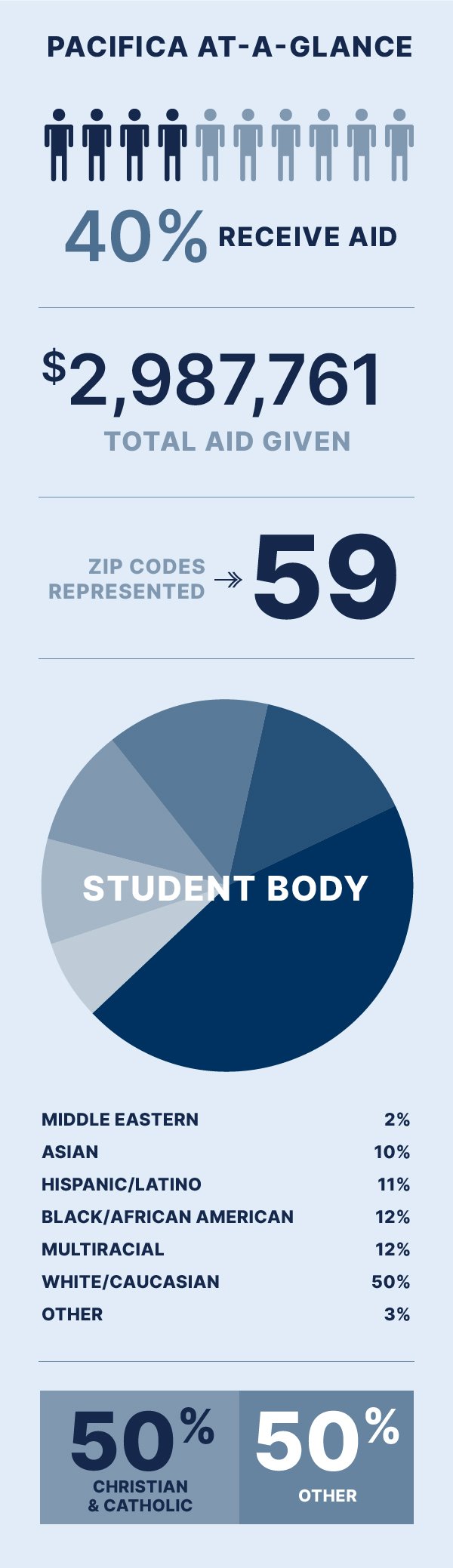 We acknowledge that not everyone in our society has been afforded the same opportunities. Understanding this reality, Pacifica’s mission is to be a school composed of students from all neighborhoods. At its inception, Pacifica was founded on the strength of a broad and diverse school community. Our desire is to provide a high-quality education to a wide range of students, reflecting the beauty and diversity of the kingdom of God. We believe such education is good for all and opens up opportunities for many that have not traditionally been able to take part in private education.