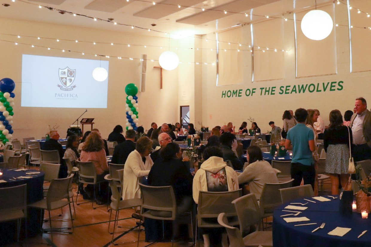 Each year, Pacifica hosts a sit-down meal for seniors and their families to celebrate the end of their high school years, reflect on their growth, and recognize the outstanding achievement of a select few individuals. Pacifica staff members transform the gym into a beautiful atmosphere where guests enjoy a catered meal while mingling with their classmates, teachers, and family members. This year, teachers and staff spoke about our Salutatorians and Valedictorian.
