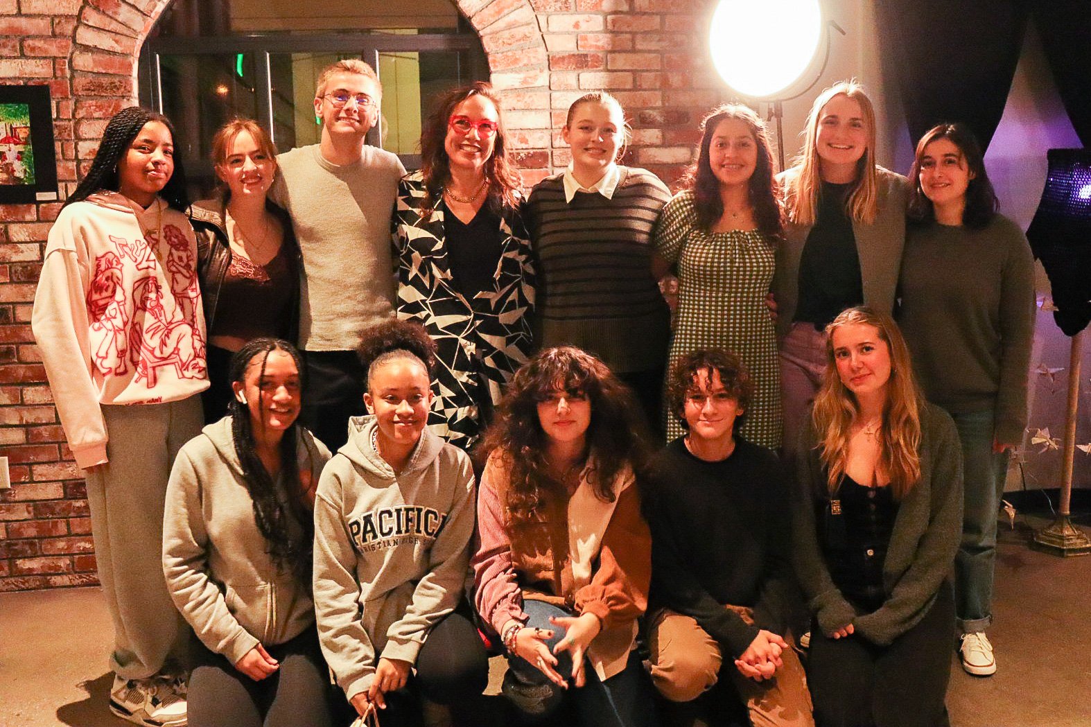 Take a glimpse into the creative world of this year’s Winter Art Gallery: Illumination Cafe! Our visual arts teachers and students have spent the greater part of the school year preparing for this installation at the professional gallery space in the Santa Monica Water Gardens. The gallery holds over 100 pieces of artwork represented by over 70 student, faculty, and staff artists. A team of 17 student curators, and a core group of eight, have been meeting before school on Friday mornings since August to plan out the gallery– they not only dreamed up the theme and event, but also made, juried, transported, installed, organized, mounted, and labeled artwork.