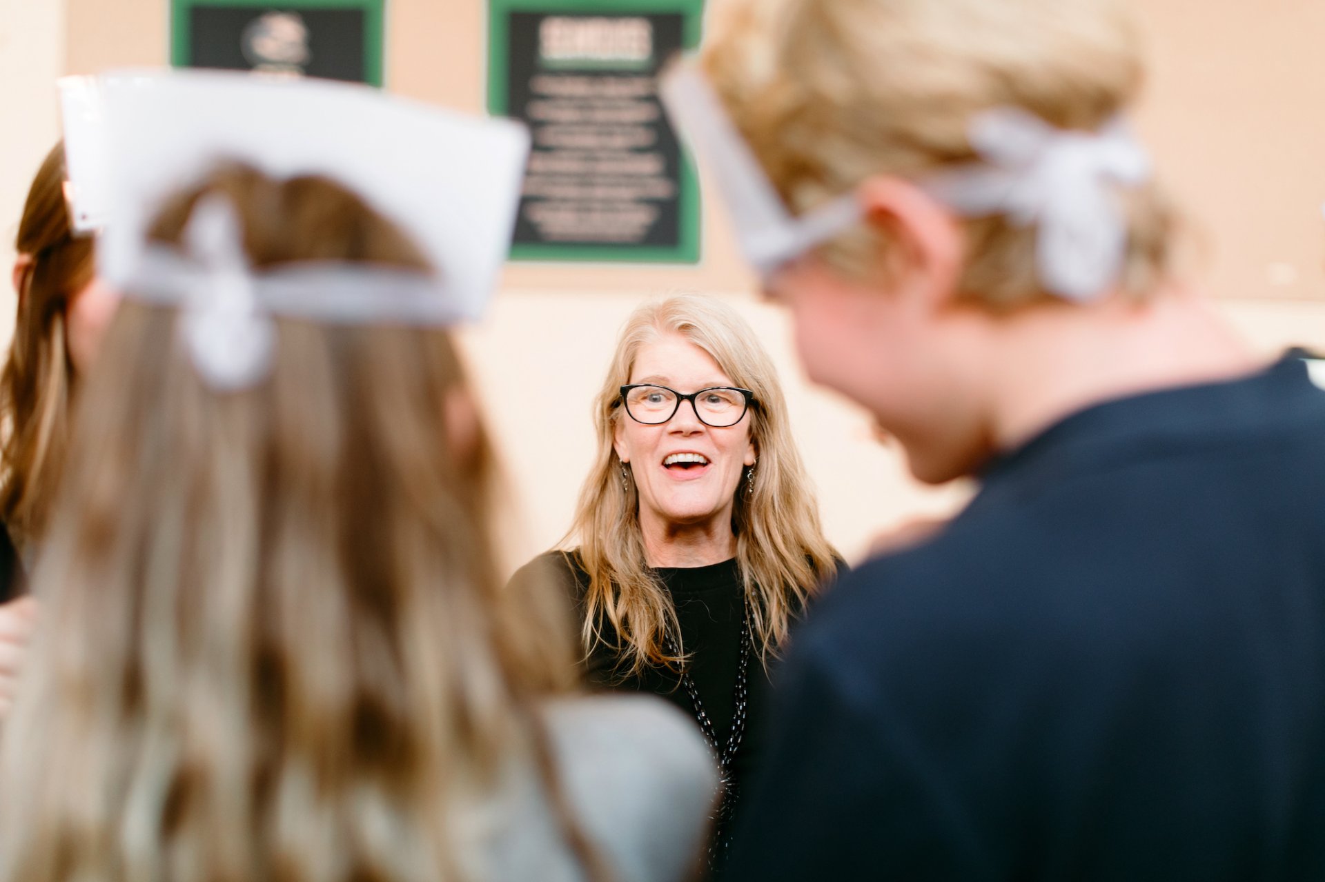 Mrs. Geiger took time away from teaching to raise her large family of five children (all adults now). She said that this experience of raising children, especially as teens, deepens her perspective as a high school teacher and allows her to work with her students with greater understanding of where they are coming from. This background also helps her to partner with parents to achieve success for their children.