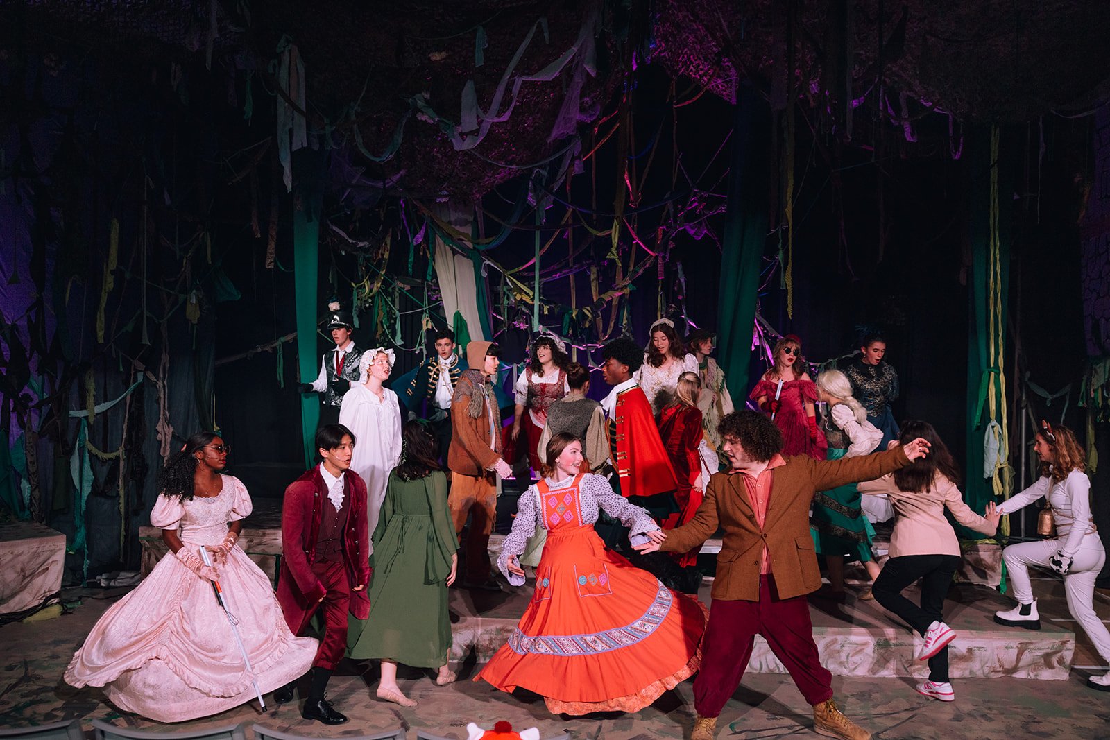 For the first time ever, our stage was arranged horizontally in the gym, providing unprecedented possibilities for staging and set design. After months of memorizing lines, perfecting harmonies, and blocking scenes, it all came together during tech week with the rest of the crew. Tech week requires students to remain at the school for long rehearsals into the evening, which is both a tiring and exciting time of bonding for our arts students. Get an inside look into tech week here! Our set design crew, led by seniors Vyvien Estes and Luka Vasyanov, labored to create the mystical woods, Rapunzel’s tower, and other prop items. The stage crew, led by senior Anna Mori, coordinated lighting and mic cues meticulously. The backstage crew, led by senior Roman Lenz, worked to transition set elements, aid with costumes, and prepare props. The house crew prepared to greet audience members and offer concessions. It culminated into an incredible set of performances that left us in awe of the talent and hard work put forth by our PACARTS students.