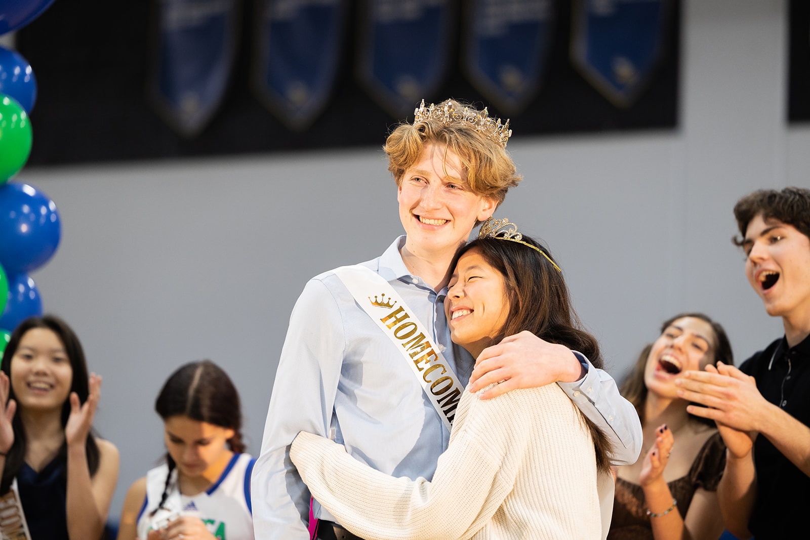 Next, the whole school cheered on our winter sports teams as they were presented at the pep rally. Salty the Seawolf even made an appearance to wish them luck! Lastly, Jenna Kim and Jeff Molina were named Freshman Lord and Lady, and Amadora Paola and Mason Kim were named Sophomore Duke and Duchess.